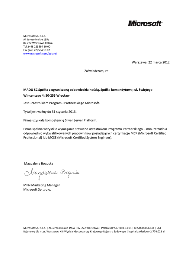 @microsoft@112it.plMADU SC jako Microsoft Silver Server Platform