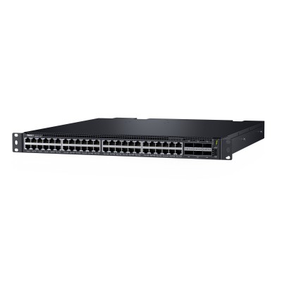 S4048T-ON, 48x 10GBASE-T and 6x 40GbE QSFP+ ports, IO to PSU air, 2x AC PSU, OS9