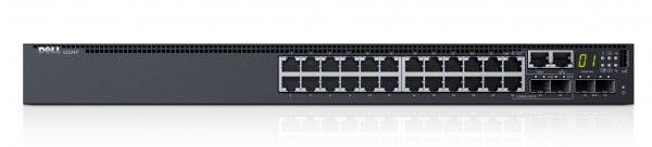 Dell Networking S3124P, L3, PoE+, 24x 1GbE, 2x Combo, 2x 10GbE SFP+ fixed ports, Stacking, IO to PSU air, 1x 715w AC PS