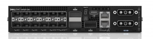 Dell EMC Switch S4112F, 12 x 10GbE SFP+, 3 x 100GbE QSFP28, IO to PSU, 2 x AC PSU, OS10