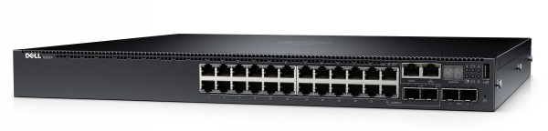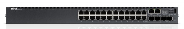 Dell EMC N3024ET-ON Switch, 24x 1GbT, 2x SFP+ 10GbE, 2x GbE SFP combo ports, L3, Stacking, IO to PSU air,1x AC PSU