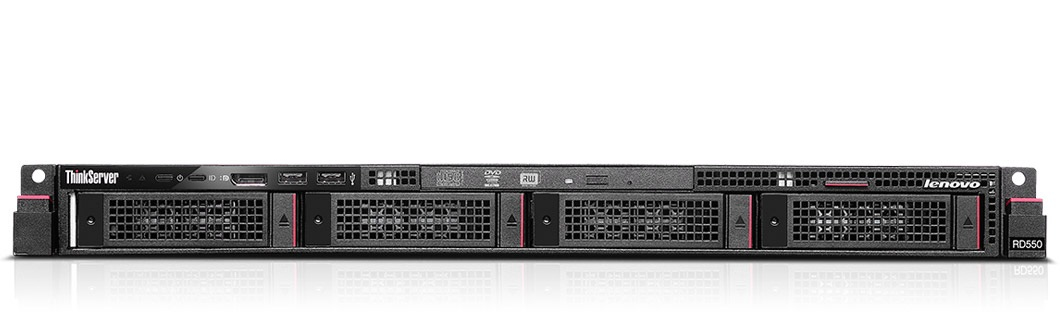 serwer Lenovo RD550, 1xXeon E5-2697 v3 14C/2.6GHz/35MB/145W/2133MHz, 1x8GB 2133MHz RDIMM, 4x3.5" HS, 720i, O/Bay, DVDRW, GbEx4 RJ45, No SD Module, 1/2 Slots, No TSM, No TPM, 750Wx1 Platinum, No Preloaded OS, 3-year Warranty
