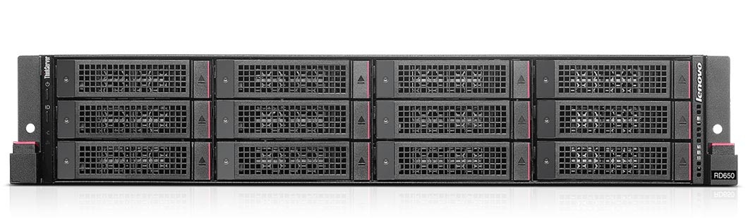 serwer Lenovo RD650, 1xXeon E5-2680 v3 12C/2.5GHz/30MB/120W/2133MHz, 1x8GB 2133MHz RDIMM, 12x3.5" HS, 720ix+1GB RAM, O/Bay, No Optical Drive, 10GbEx4 RJ45, No SD Module, 6/8 Slots, No TSM, No TPM, 750Wx1 Platinum, No Preloaded OS, 3-year Warranty