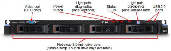 serwer Lenovo x3530 M4, Xeon 4C E5-2407 80W 2.2GHz, 1066MHz, 10MB, 1x 4GB, 0/Bay HS 3.5in SAS/SATA, SR H110, 460W p/s, Rack