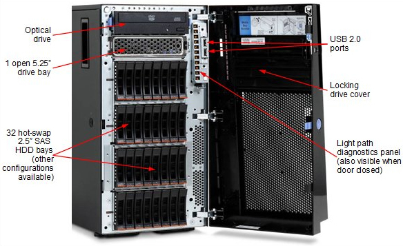 serwer Lenovo x3500 M4, Xeon 6C E5-2620v2 80W 2.1GHz/1600MHz/15MB, 1x8GB, O/Bay HS 2.5in SATA/SAS, SR M1115, DVD-ROM, 750W p/s, Tower