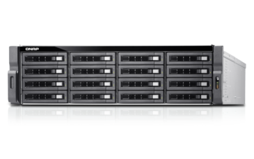 QNAP 16 (+4)-Bay TurboNAS, SAS 12G, SAS/SATA 6G, Xeon E5-2620 v3 2.4GHz, 64GB RAM, 4-LAN, 10G-ready, iSCSI, RAID 0,1, 5, 6, 10, 5+spare, 6+spare, 10+spare, global hot spare, max 32 GB RAM, max 8-LAN, PCIe expansion slot x4, redundant power supply, Without Rail Kit