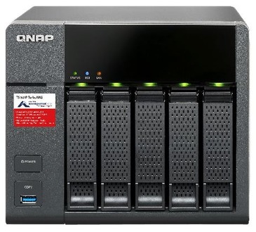 QNAP 5-Bay NAS, 8GB DDR3 SODIMM RAM (max 16GB), SATA 6Gb/s, 4 x GbE LAN, 10GbE Ready via optional PCI-E NIC, hardware encryption, Container Station, Surveillance Station, max 2 UX-800P/UX-500P expansion units