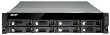 QNAP 8-Bay TurboNAS, quad-core Celeron 2.0GHz (up to 2.41GHz), 4GB DDR3L RAM (max 8GB), 4x GbE LAN, hot-swappable SATA 6Gb/s, HDMI, QvPC, hardware transcoding, redundant power, without rail kit